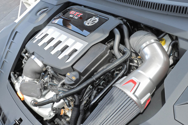 全新Golf GTI的最大馬力為220hp,而Performance車型更能再多出10hp,然而,Design Vision GTI卻是Performance車型的兩倍以上;在車頭引擎蓋下的動力已非熟悉的直列四缸,而是換上了V6 3.0 TSI渦輪直噴汽油引擎,這具V6引擎配置了雙渦輪,而兩具相連的三向觸媒轉換器,更讓Design Vision GTI不會被環保人士所白眼。
