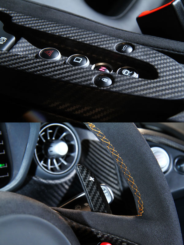 McLaren P1™ 在座艙中同樣大量採用碳纖維材質打造。