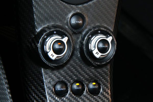 McLaren P1™ 於中控台上設有多種動態模式與電子輔助系統調整介面。