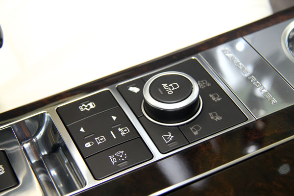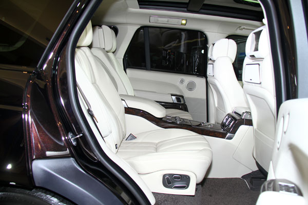 於頂級車款上,開啟車門映入眼簾的是門檻上的刻以Autobiography字樣的科技冷光迎賓飾板,而開闊的儀錶板橫亙於前,再交叉延伸筆直的中控台設計,其上並以頂級皮革包覆,再綴以頂級胡桃木紋飾板,形成極富空間張力卻又協調的視覺感受。不但中控台按鍵減少達50%,尺寸達12.3吋LED儀錶板以及VGA高解析度8吋彩色繁體中文化中央觸控顯示幕也提供All-New Range Rover寓繁於簡的先進科技感;開闊的Command Driving Position指揮家式駕駛座姿則提供駕駛者至高的視野以及無比踏實的安全感,具電動調整及加熱功能的方向盤則以Oxford真皮搭配木紋包覆;而儘管車身尺寸並未大幅增加,在工程師巧妙的而精鍊的空間規劃之下,All-New Range Rover的後座空間更較前一代車型增加了120mm, Vogue以上車款標配整合獨立音響控制系統、後座8吋螢幕DVD播放機、智慧型遙控器、雙無線耳機的RSE後座頂級娛樂系統;而5.0 V8 S/C Autobiography更可選配雙獨立後座椅的四座配置,包含整合三組記憶的20向電動調整雙前座椅含按摩及冷/熱空調功能,搭配內建椅背具電動傾斜功能及腰靠調整的Autobiography專屬後座頂級Semi-Aniline真皮座椅,上嵌專屬Autobiography字樣以及細膩的雙針車縫設計,搭配飛翼式頭枕以及全真皮包覆的頂篷,無微不至的呵護展現頂級Premium SUV的奢華格局;All-New Range Rover車系座艙全更內建個人化LED氣氛燈,並提供多達10種以上的氛圍選擇,搭配金屬材質的使用,包括中控台兩端的經20道工序精製打造的鋁合金飾板、Commandshift®手自排旋鈕、以及空調出風口,與皮革和木頭的溫度對比出了冷冽的建築結構氛圍。