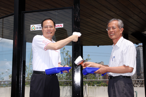裕隆日產汽車總經理蔡文榮(右二)、林務局保育組組長管立豪(右三)與林務局羅東林管處副處長吳坤銘(左二)共同邀請北中南民眾響應綠色環保概念。