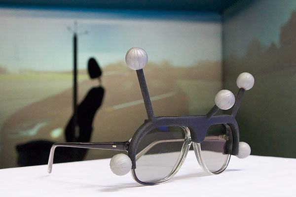 這好似長了觸角的眼鏡,便是透過這些白色的小球讓紅外線動作感應器能夠捕捉頭部的動作,進而改變投射至螢幕上的視角。