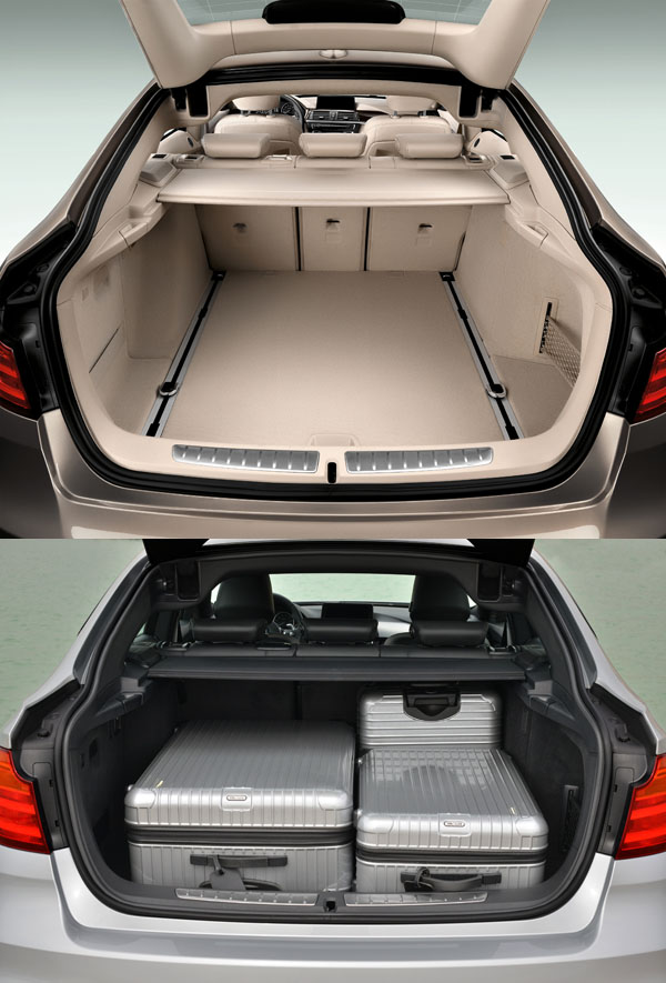 全新3系列Gran Turismo的行李廂容積為520公升(較BMW 3系列Touring多25公升),若將4/2/4分離可折式後座椅背全部傾倒,則可達到1600公升的最大空間;加上全車系標配的電動尾門啟閉系統,便可輕鬆收納高爾夫球具類的大件行李。此外,在長程的旅途當中,全新3系列Gran Turismo的後座椅背可視需求做8~27度的傾角調整,讓後座乘客更加放鬆,即使長時間乘坐也不覺疲累。