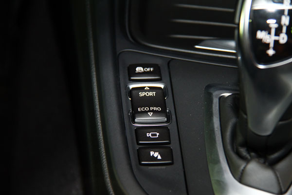 為滿足不同的旅程需求與個人喜好,駕駛者可透過位於中央鞍座的動態行車模式切換按鈕,隨興選擇Comfort、Sport、Sport+或Eco Pro模式,享受在不同引擎反應、懸吊系統、與DSC動態穩定系統不同介入程度下的操控體驗;當切換至Eco Pro節能模式時,系統將主動協助達成更經濟的效能表現,不僅能控制空調系統的最大輸出功率,油門踏板的靈敏度也會隨之改變,確保加速的穩定性。當然,駕駛者能根據個人的駕駛習慣,參考顯示於中央螢幕上Eco Pro提示的行車節能建議,系統並會更新在使用Eco Pro節能模式下所增加的額外里程數,實現BMW高效動力的環保承諾。