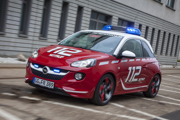由Opel Special Vehicles GmbH(OSV)打造,將時髦都會小車定位、轉換為救災現場第一線救助用車的Opel ADAM,其紅白雙色的車身烤漆,在車頭引擎蓋、車門、與尾門等處,還有顯而易見的112緊急通報號碼,此外在車頂上還有特殊的信號系統,車頭還有兩具LED閃爍警示燈。這款消防型ADAM,在車內還配置有eAZD轉輪式電子警報器,中控台上還有手提式TETRA數位無線電裝置。