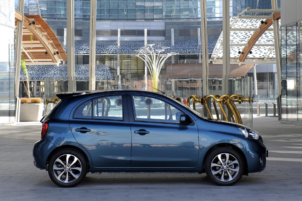 小改款Nissan Micra(March)現在具有太平洋藍珍珠金屬色、與白金鼠尾草金屬色等兩款全新車色選擇,以及15至16吋不等的全新鋁圈選項;小改款Micra藉由全新頭燈組、水箱護罩、以及車頭中央「V」字形鍍鉻飾條包圍著Nissan廠徽的設計,來突顯原廠所採用的全新設計識別,另外結合翻新設計的前保桿、更大型的氣壩開口、以及兩邊的三角形霧燈,更使得Micra給予人可愛的第一印象完全改觀。