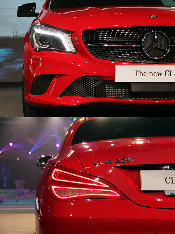 擁有車長4,630mm、車寬1,777mm、車高1,432mm尺碼的CLA雖然以MFA前驅底盤為基礎,但CLA不若A-Class與B-Class那般採用一般的掀背構型,而是採用更具動感與優雅的4門Coupé設定。在外型設計上,CLA大量沿用傳統Coupé轎跑車的線條,揚起的腰線與滑順向後延伸的車頂線條,為CLA構成優美的線條比例。搭配承襲A-Class的車頭設計,透過霸氣的水箱護罩,以及動感的頭燈輪廓,為CLA帶來了侵略感十足的面容。
