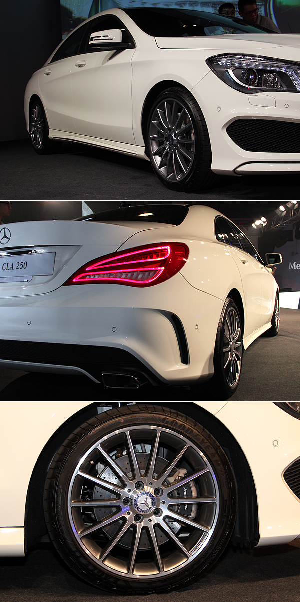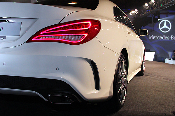 CLA的車尾,則大量承襲了2012年北京車展中,Mercedes-Benz所發表的概念小型轎跑作品 Concept Style Coupé的設計元素,運用柔和的線條與特殊的燈組設計,呼應CLA車身上豐富的光影線條。大面積的尾燈設計,不僅漂亮地將車側線條向後收攏,內部特殊的燈組設計,更讓尾燈好似火焰圖騰,展現CLA的熱情與動感。