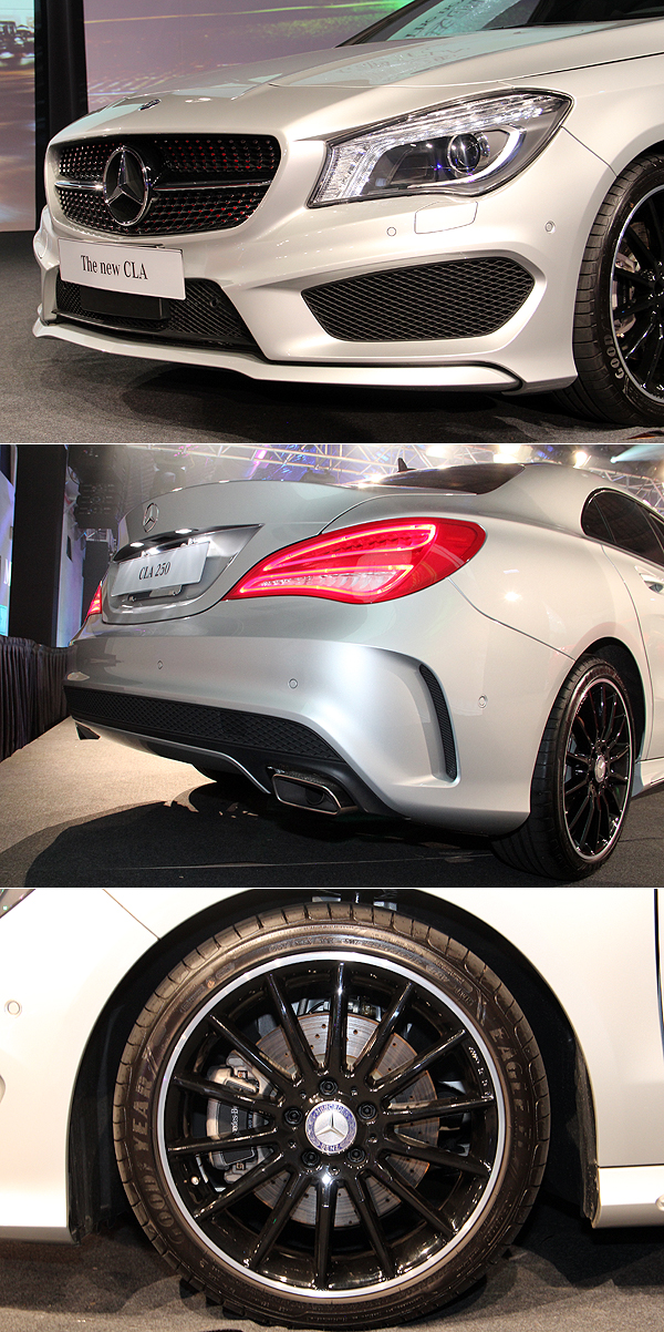 其中AMG跑車化套件整合AMG前後保桿與側裙、18吋AMG 5輻雙肋式輪圈、 銀色鍍鉻單柵鑽石型水箱護罩,並搭配Artico/Dinamica材質的跑車式座椅、舒適座椅套件、亮面鋁質內裝飾板、Nappa真皮3輻多功能跑車方向盤附對比車縫線、AMG字樣專屬腳踏墊,同時也是CLA 250的標準配備。
