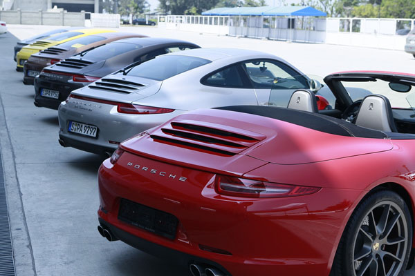 2013 Porsche體驗動感駕訓營規模更甚以往,齊聚Porsche最新車款共約 23 部,包括:911 最新全車系車款、全新上市之中置引擎 Cayman 與 Boxster 跑車、四門 GT 跑車 Panamera 全車系車款,以及高性能休旅 Cayenne 全車系車款。此外,部分原廠車輛亦選用特殊車身漆與內裝真皮色,讓報名參加的Porsche車迷可以感受Porsche車款獨特的客製化選用配備。