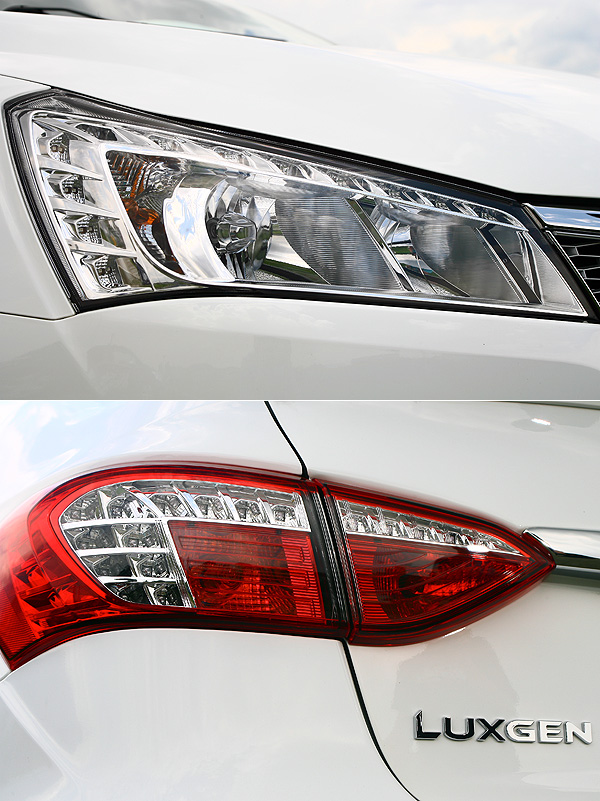 從外型來看,Luxgen5 Sedan M+並未更動Luxgen5 Sedan原有的造型設計,寬闊的一體式水箱護罩,以及大氣的廠徽與鍍鉻飾條,依然是車頭正面的視覺主體,搭配全車多處「駐筆回鋒」的設計手法,包括頭燈、車側轉向指示燈、尾燈等處所勾勒出的獨特線條,讓Luxgen5 Sedan M+依然擁有漢風濃厚的外型基調。