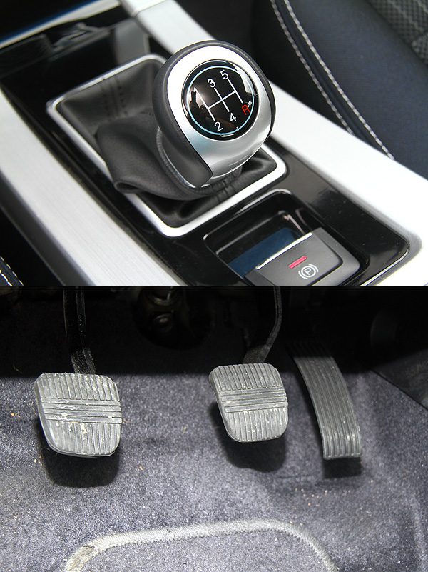 「腳感」適中的離合器踏板,搭配恰到好處的離合器踏板行程,讓人可以輕鬆地找到離合器接點與補油時機,搭配上檔位明確、行程適中的排檔桿手感,只要是曾經在駕訓班駕駛過手排教練車練習,相信都能快速的掌握訣竅。再加上標配有EPB電子式駐車系統,在上坡起步時提供絕佳的幫助。只要扳動EPB按鈕啟動電子式駐車,便只需要操作離合器與油門踏板即可進行上坡起步,更是掃除多數人對於駕駛手排車的擔憂。