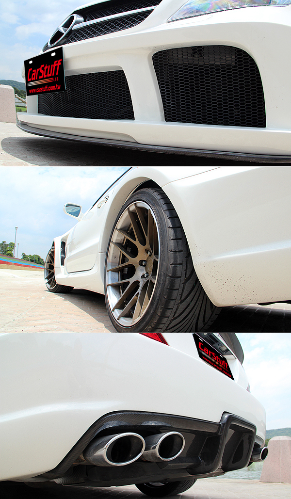Prior-Design所打造的SL Black Series車體套件包括前保桿、側裙、後保桿,以及車尾的分流器等套件,搭配寬體車身套件,在SL63 AMG上重現SL65 AMG Black Series的兇狠外表。