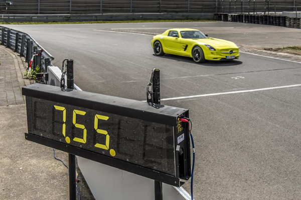Mercedes-Benz SLS AMG Electric Drive電動車日前創下Nurburgring Nordschleife單圈7分56秒234的紀錄,同時,這款AMG電動跑車也成為Nurburgring場上第一款單圈低於8分的市售電動車款。