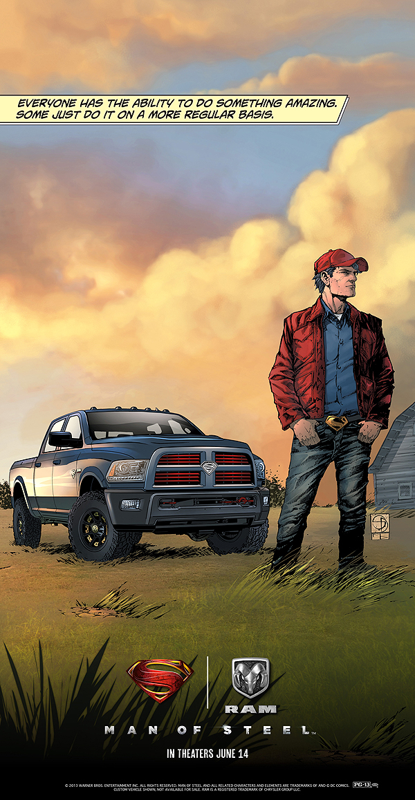 1938年首度現身於漫畫中的超人Superman不僅是美國超級英雄中的代表人物,同時也出現在不同的電視影集與電影之中。6月12日,超人系列最新的電影《超人:鋼鐵英雄》 (Superman:Man of Steel) 將在臺灣上映,片中不僅能夠再度看見超人行俠仗義的英勇形象。同時,美式貨卡的代表性產品之一,Chrysler旗下的Ram Turck全尺寸貨卡產品也現身電影之中,透過粗獷、驃悍的表現,與超人相互匹配。