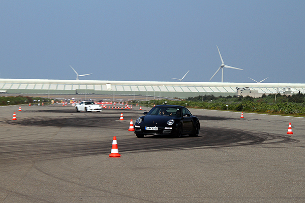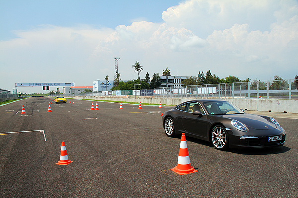 為了傳達正確的駕駛技巧與緊急狀況時的應變方式,不能免俗的Porsche仍安排有安全駕馭技巧的傳授,在這篇所運用的是搭載3.8升水平對臥6缸引擎,擁有400匹最大馬力、0-100km/h加速僅需4.5秒的911 Carrera S。運用大鵬灣賽車場的前直道,以大腳油門起步 (也可使用Lunch Control起步彈射系統) 加速至約85km/h,在教練告知進行煞車時猛力踩下煞車並持續踩踏煞車踏板不放,同時進行障礙的閃避直到車輛完全停止,模擬在一般道路上前方突然出現障礙的狀況。