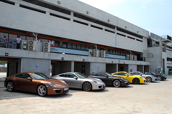 圓潤、俏麗不一的臀部,都是Porsche旗下新一代的雙門跑車產品,這次齊聚在大鵬灣國際賽車場,讓參加Porsche World Roadshow的學員們駕駛。
