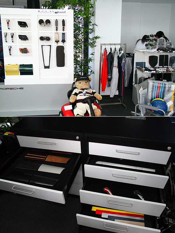 在休息室中,Porsche展出各種客製化的配件,展現Porsche能為每位車主打造專屬愛車的能力。