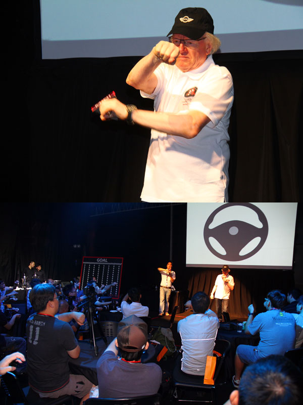 在室內課程中,Rauno Aaltonen不僅仔細講解駕駛技巧,也要大家動起來試試看轉動方向盤的方式。