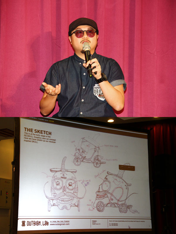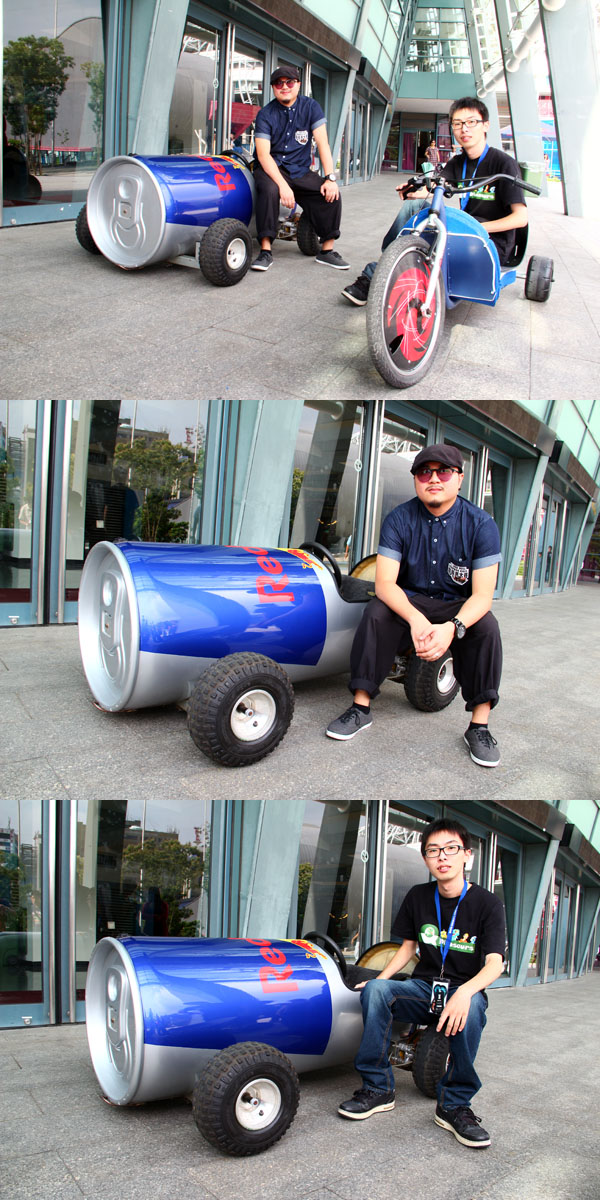 Red Bull台灣辦公室特地邀請2012年香港皂飛車冠軍隊伍Outsign Lab的Sam陳步昇〈上〉與台科大工業工程設計系學生廖偉翔〈下〉到場分享造車與參賽心得!