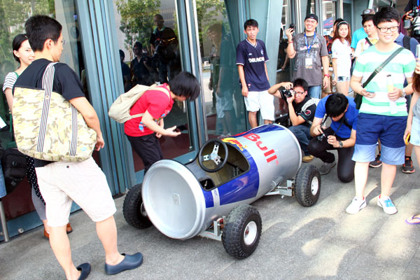 在會後,參賽者無不抓緊機會,對著Red Bull原廠宣傳車的各個構造拍照,做為製作參賽車的參考。