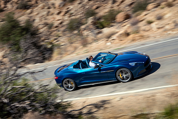 源於Vanquish的Vanquish Volante,是Aston Martin現行家族中的旗艦GT跑車Vanquish車系下的敞篷車型,在明顯不同的車體線條之外大量承襲現有Vanquish的設計元素。承襲One-77而來的大膽線條設計、充滿肌力的輪拱曲線,以及由前葉子板向車門揚起的散熱鰭孔與凸起鰭線,搭配車頭賁張的碳纖維空力設計、車尾分流器造型與家族共通的「凸」字型水箱護罩,前衛的大膽設計不僅現於Vanquish,當然也為Vanquish Volante所沿用。