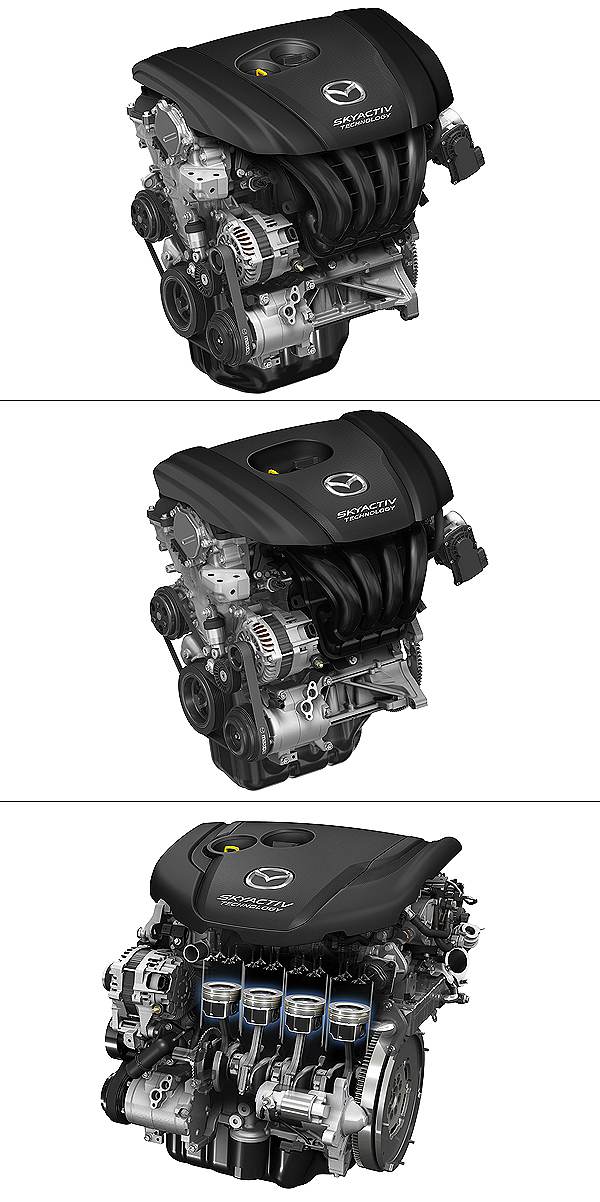 新一代Mazda3的動力編成將會包括Skyactiv-G 2.0 (上) 、Skyactiv-G 1.5 (中) 與Skyactiv-D 2.2 (下) 等不同的汽油與柴油引擎。