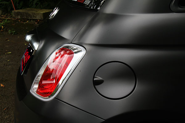 尾燈周圍以鍍鉻處理,搭配消光車色,對比強烈別有一番風味。