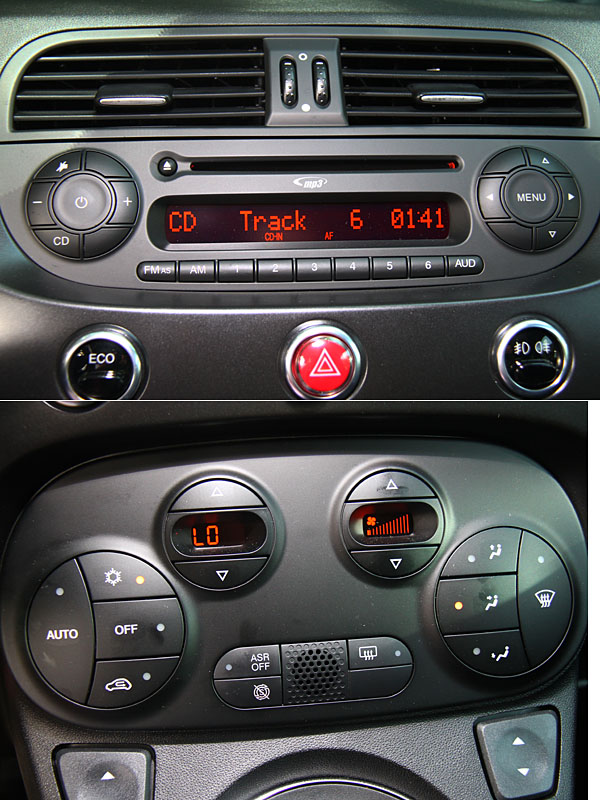 車室內的鋪陳同樣以黑色為主軸,消光黑的中控飾板,搭配上紅色的品牌廠徽,對比強烈,且同樣有著極為齊全的配備清單,如微軟為其開發的Blue & Me車載資訊整合系統、Interscope Sound System音響系統、恆溫空調等無一漏缺。