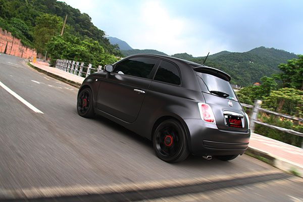此輛Fiat 500 TwinAir採取相當特殊的消光黑車色,原廠名為〝Black Jack〞。