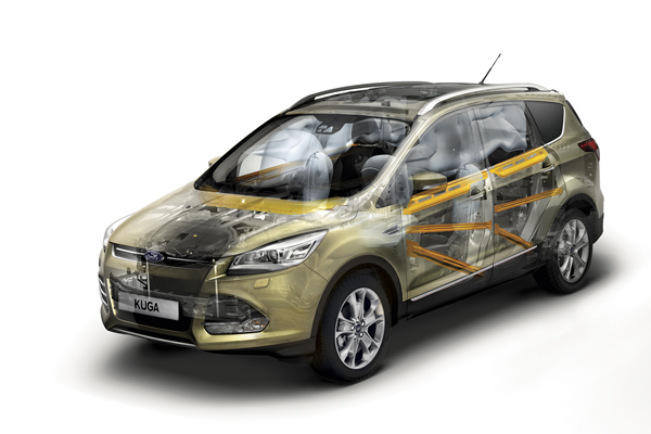 全新Kuga擁有超越同級的主被動安全系統,全車系標配雙前座、雙前座車側與駕駛座膝部共5具SRS氣囊。而在1.6升時尚經典型、2.0升運動型與2.0升旗艦型上,則增加雙側邊簾幕式SRS氣囊,達最多7具安全輔助氣囊之設置。另外,全新Kuga將多項主動安全配備列為全車系標配。搭載AdvanceTrac先進式電子車身動態穩定系統附加RSC™車輛防滾系統、TCS循跡防滑控制、ABS防鎖死煞車控制、EBD電子煞車力道分配、EBA煞車力道輔助與Hill Start Assist斜坡起步輔助等。