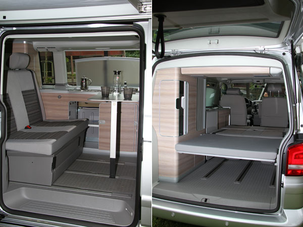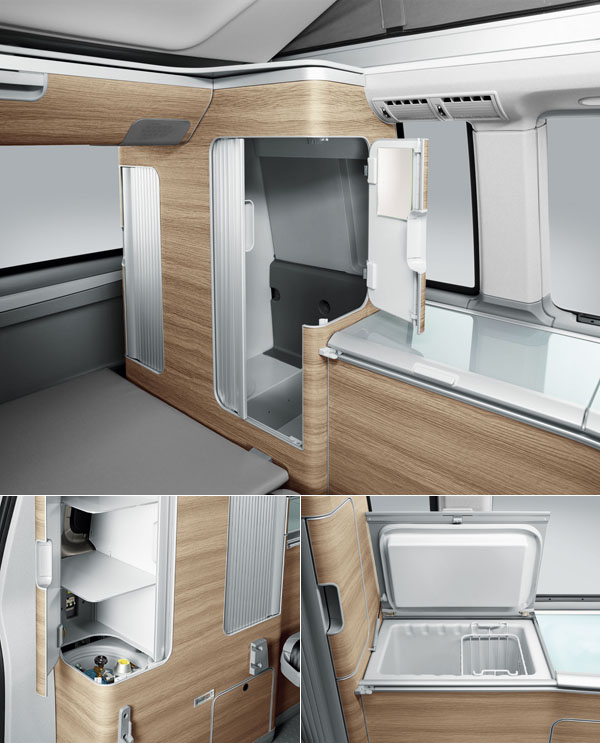 除了上述改款重點外,California GP其餘之配置與規格則保有改款前之優異設計基礎,如巧妙設計的收納空間規劃,衣櫃、儲物櫃俐落地安排在車室的空間中,並且巧妙的隔出上頂棚的空間只要輕壓電動按鈕就會出現舒適的臥鋪,上層臥床可乘重250kg,足供三位成人休憩,下層座椅亦可變換為足供三位成人的床舖,起居室和駕駛艙都配有完善的遮光罩拉廉,輕鬆享受私密空間,並確保適當的遮蔭效果。全功能的整套廚房配備,備有42公升的冰箱空間,足以應付大量的食材,另有多用途摺疊餐桌,可簡潔地收納於滑門飾板內,更可以輕鬆的展開成為家人談心的餐廳。