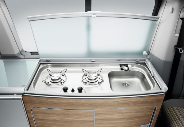 California GP內的Bar-B-Q烤爐配備更通過德國嚴格認證防爆測試,瓦斯警報偵測器貼心的為安全把關,在車室內烹煮食物,不須擔心天然氣外洩,由此細節處,就可深刻體會VW California GP車款細心程度,與對安全之重視。