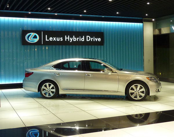 為了提供顧客愉悅的賞車及維修服務,旗艦店內部規劃有寬敞的新車展示區、顧客商談區、新車交車區、顧客休息區及服務接待區等。新車展示區特別設置獨立的Hybrid車系展示專區,採用代表Lexus Hybrid Drive純淨自然的水藍色主視覺,利用具透明特性的玻璃地板及牆面隔柵,來詮釋Hybrid科技感與未來感。牆面並設置液晶電視,方便賞車顧客更深入了解Lexus Hybrid Drive系統。值得一提的是,為了提供車主專屬多功能的活動空間,旗艦店內設有高爾夫推桿區,讓車主在等候車輛維修保養時有另一種休閒的選擇。此外,顧客休息區的吧台更特別採降板設計,讓服務人員站立的高度與坐在吧台前的顧客相當,以避免對顧客產生壓力。從這些為顧客設想的貼心設計中,亦展現Lexus處處以客為尊、追求完美的品牌態度。Lexus彰化旗艦店並廣泛運用環保建材,如日本進口無公害製程原木地板,及美國進口採回收材質再生利用的高級地毯等,以表現Lexus致力地球環境關懷的決心。