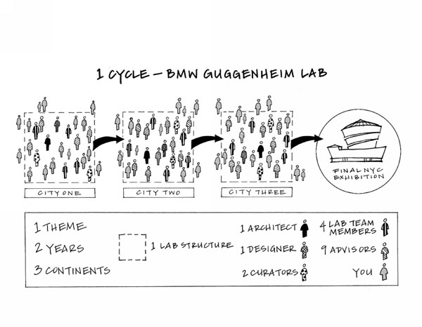 BMW古根漢實驗室(BMW Guggenheim Lab)將是一座具巧妙創意、並可拆裝移動的建築物,可自一個都市巡迴到另一個都市;它將聚集全球胸懷志向的思考者,並成為大眾在討論影響都市生活主要議題的集思廣益平台。在未來六年中,將成立三座BMW古根漢實驗室,此三座實驗室各自擁有不同的主題、建築師、和平面設計師,每座實驗室在每兩年的週期於全球三大都市進行巡迴。