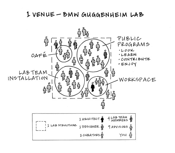David van der Leer表示:「對博物館來說,將建築和設計上的規劃帶出美術館的白色盒子,帶進現實中日常都市生活已經越來越有必要;BMW古根漢實驗室這個專案讓我們得以從設計領域跳脫出來,擴展到一個更廣闊的、後學科的視角看都市,然後再回歸到全球都市所面臨的問題、挑戰和機遇。」