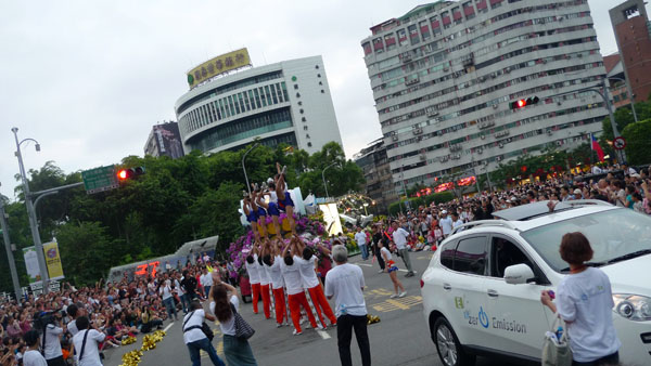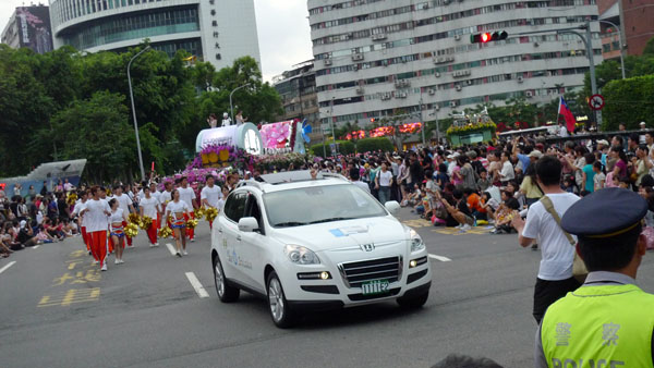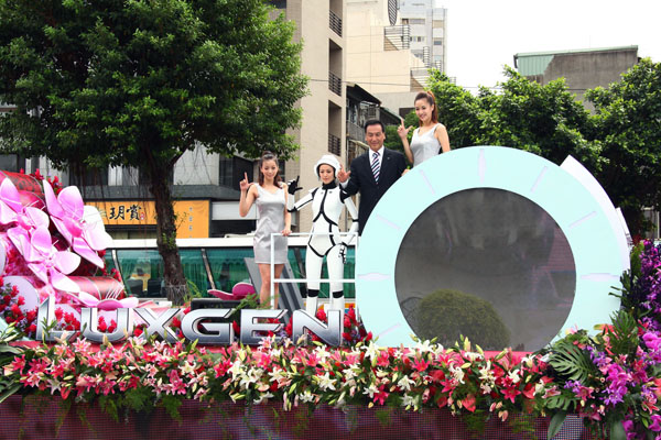 世新大學啦啦隊、凱渥名模、機器人 為Luxgen電動國慶花車熱鬧助陣