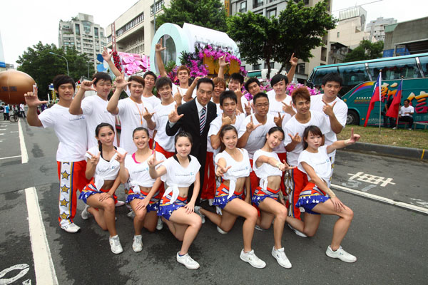 「2010大專甲組啦啦隊冠軍-世新大學 加入LUXGEN電動國慶花車遊行行列。
