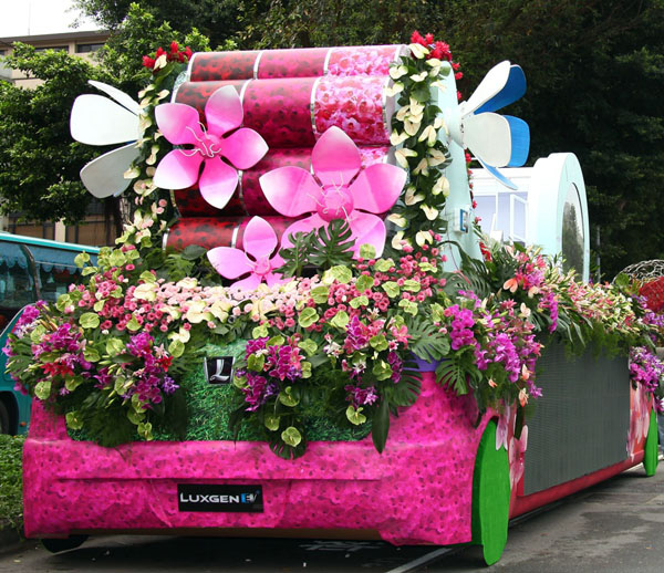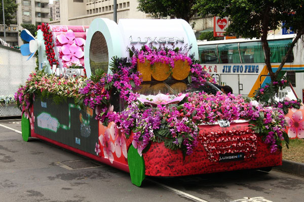 以Luxgen7 SUV外型為意像開發的「電動國慶花車」,完美將科技與花卉結合,可說是所有花車中完整度最高的一輛,這輛由台灣第一家自主汽車品牌所打造的電動花車,也完全展現專業車廠的專業與實力。