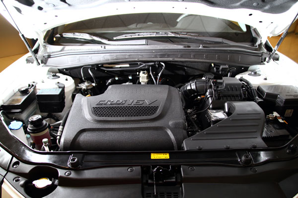 在過去地柴油引擎設計上,需要高壓縮比來壓縮點火,因此在先天上行程較長不利於高轉速輸出,但Hyundai R-Type引擎運用世界最先進的噴油控制技術,有效降低引擎壓縮比、拉升引擎限制轉速,同時採用第三代BOSCH高壓共軌燃油直噴科技,加上新一代Piezo壓電晶體噴油嘴,燃油霧化的效率更佳,燃燒也更完全,並且供油壓力高達1,800Bar,同時經由Hyundai技術部門的再調教,不僅馬力提昇27%達到197hp,扭力亦再提高27%達到44.5kgm,馬力大幅超越M-Benz 2.0L柴油引擎,扭力更勝BMW 3.0L柴油車,同時透過許多先進裝置輔助降低N.V.H,大幅降低震動及噪音,靜肅性大大提升。