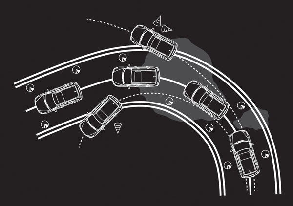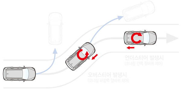 全新進化的Santa Fe eVGT配備了全新的科技系統來輔助強悍的動力輸出,讓駕駛在高速馳騁時,也能具備全面性的安全防護。首先配置了ESP(Electronic Stability Program)電子車身穩定系統,ESP的重要特性在於當駕駛情況接近極限,車輛的穩定性處於危險時,感知器偵測汽車偏航速度、橫向加速,以及駕駛所操作的方向盤速度。ESP將資料與電腦所處理的參數比對, ESP系統會介入車輛控制,自動降低動力輸出,同時運用煞車系統使車輛回歸正常行駛路線。