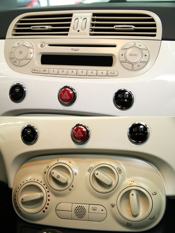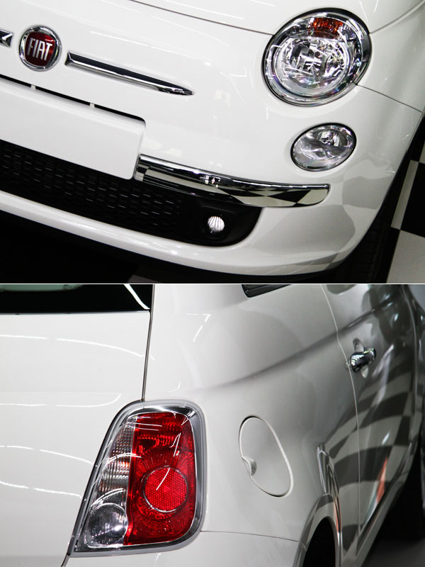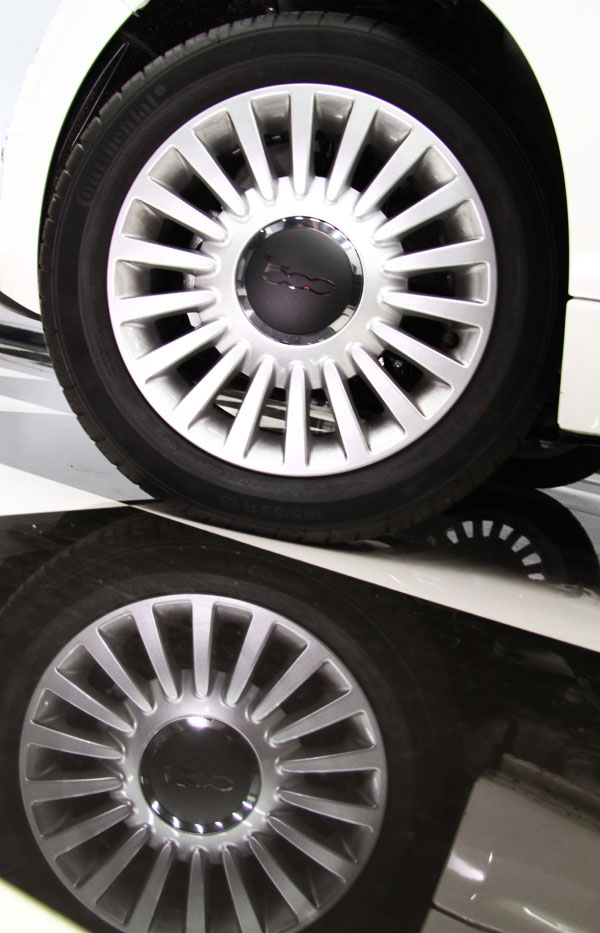 目前於原廠車系編成中,Fiat 500有著三汽一柴的多樣動力版本,而此次由三傑聯合引進的車型,乃是定位較為入門的1.2升汽油車型。雖然採訪小組過去也曾於海外試駕行程中,於歐陸地區親嚐Fiat 500之魅力,但首次能以靜態姿態、由外至內細細「品嚐」Fiat 500整體設計與造型機會,此次拍攝行程絕對是首次;而在拍攝過程中,仔細端倪Fiat 500的外觀造型,那融合經典與現代的設計語彙,仿若時空經過扭曲般,Fiat 500的美讓人陷入迷幻,是1950年代的美,還是2010年的魅,已讓筆者分不出個明白;而那圓潤可人的車身線條、飛翼設計的水箱飾輝、兩大兩小的圓型頭燈組、由引擎蓋一路往後延伸的特色腰線、傾瀉而下的車尾線條,還是直立式的尾燈組等,一次又一次的訴說著Fiat 500的歷史地位與時尚演繹,從何角度欣賞,Fiat 500,都像極了一經過柔化的工藝精品,美的讓人不捨得眨眼。