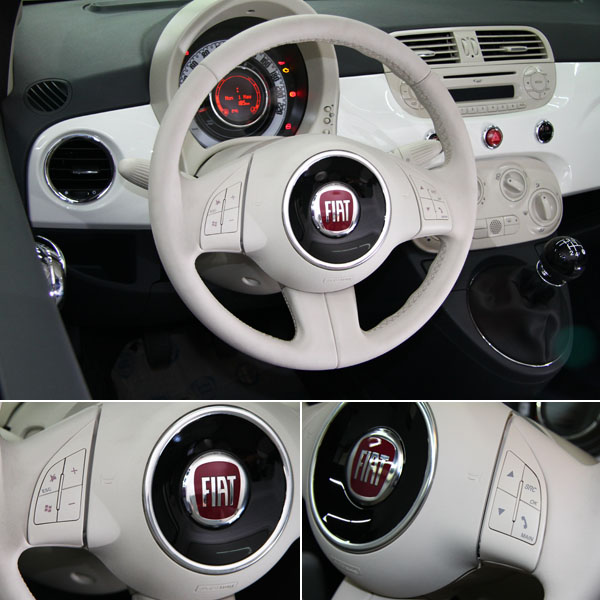 多功能方向盤,其中右側按鍵組合中的右下側為Fiat與微軟合作開發的Blue&Me系統中通訊介面的藍牙通話功能。
