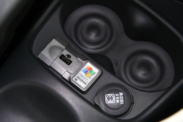 中央鞍座置杯架後,乃是Fiat與微軟合作開發的Blue&Me系統中音樂外接介面的USB連接阜。