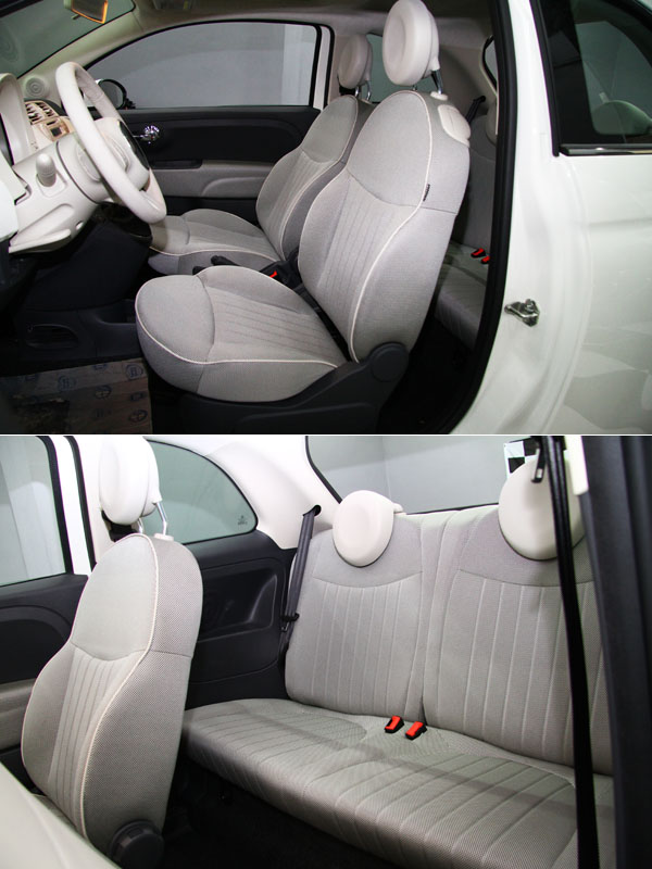 在其2300mm軸距長度中,提供雙排四座乘坐空間,但無疑的以此車型尺碼,Fiat 500是以前座乘座為主,因此後座空間不甚出色,而185公升的後廂容積,也可透過後座椅背的傾倒有效擴增,但相信被Fiat 500造型吸引的消費者而言,空間表現絕非重點,整體散發出的氣質,才是入主原因。