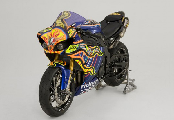 這款與Valentino Rossi五大洲(Five Continents)安全帽塗裝相同主題的2009年式R1特仕版最早發表於今年3月,就如同Rossi的安全帽塗裝一樣,是由Rossi的朋友Aldo Drudi設計,由AGV Helmet Valentino團隊負責執行塗裝,在塗裝中也將Valentino Rossi的家鄉Tavullia表現其中;而日前的拍面會是在舊金山的Petersen Museum舉行,是一項名為Classic California的拍賣會,會中蒐集了各項足以代表〝pilot〞的象徵性拍賣品,而這輛特仕版的Yamaha R1,便是象徵Rossi從家鄉Tavullia出發,在世界五大洲的分站賽事中成為MotoGP七屆世界冠軍的意義。