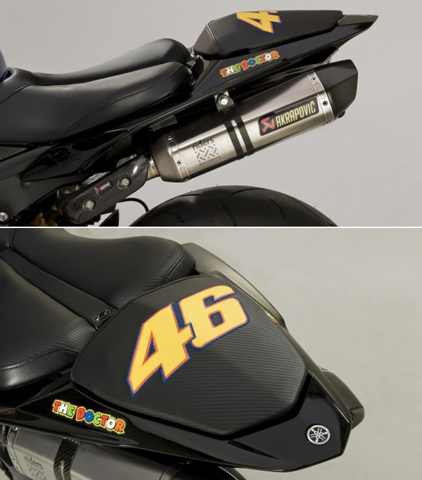 自2004年加入YAMAHA廠隊,以M1賽車奪下四座MotoGP冠軍的Valentino Rossi已成為YAMAHA R1最佳代言人,七年間以MotoGP冠軍為主題的特仕車也隨著Rossi每年不同賽車塗裝而變換;隨著Rossi轉加入Ducati車隊,未來#46塗裝特式版R1將成為絕響,也因此日前現身在洛杉磯拍賣會上的Yamaha YZF-R1 Rossi Replica,顯得格外珍貴。