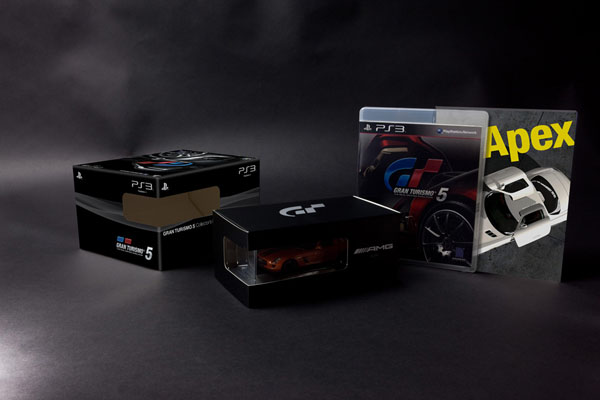 | 同梱內容物 | ◆遊戲軟件『跑車浪漫旅 5』(繁體中文版) x1 ◆初回限定特典「Apex 愛車完全指南」x1 ◆初回限定特典 PlayStation®Network 特別車款 3D 設計下載卡(5 款車組) x1 | ◆遊戲軟件『跑車浪漫旅 5』(繁體中文版) x1 ◆GRAN TURISMO®5 Collector’s Pack 限定版「Mercedes-Benz SLS AMG 1:43典藏限量模型」 x1 ◆同梱特典「Apex 愛車完全指南」x1 ◆同梱特典 PlayStation®Network 特別車款 3D 設計下載卡(5 款車組) x1 |