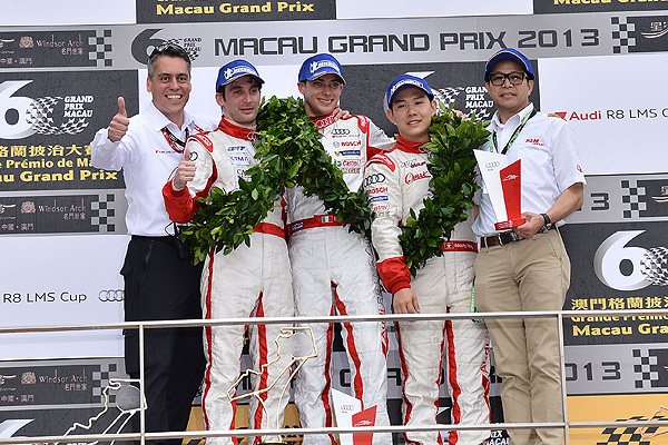方駿宇收穫了一屆完美的2013賽季奧迪R8 LMS盃。展現了超越年齡的穩重和成熟,憑藉穩定的表現,在全部11回合中僅有兩次無緣頒獎台。同時,今天對熊龍而言是艱難的一天。馬來西亞車手本賽季表現優異,贏得了4回合比賽的冠軍。來到澳門時他依然以較大優勢領跑車手積分榜。但是在排位賽中的一次碰撞事故使他的賽車嚴重受損,只得遺憾退出比賽,失去爭奪關鍵積分的機會。