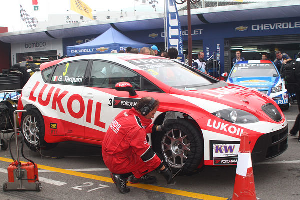 在澳門大賽賽前,可見到WTCC各車隊在積極準備輪胎,排成一地頗引人注目。